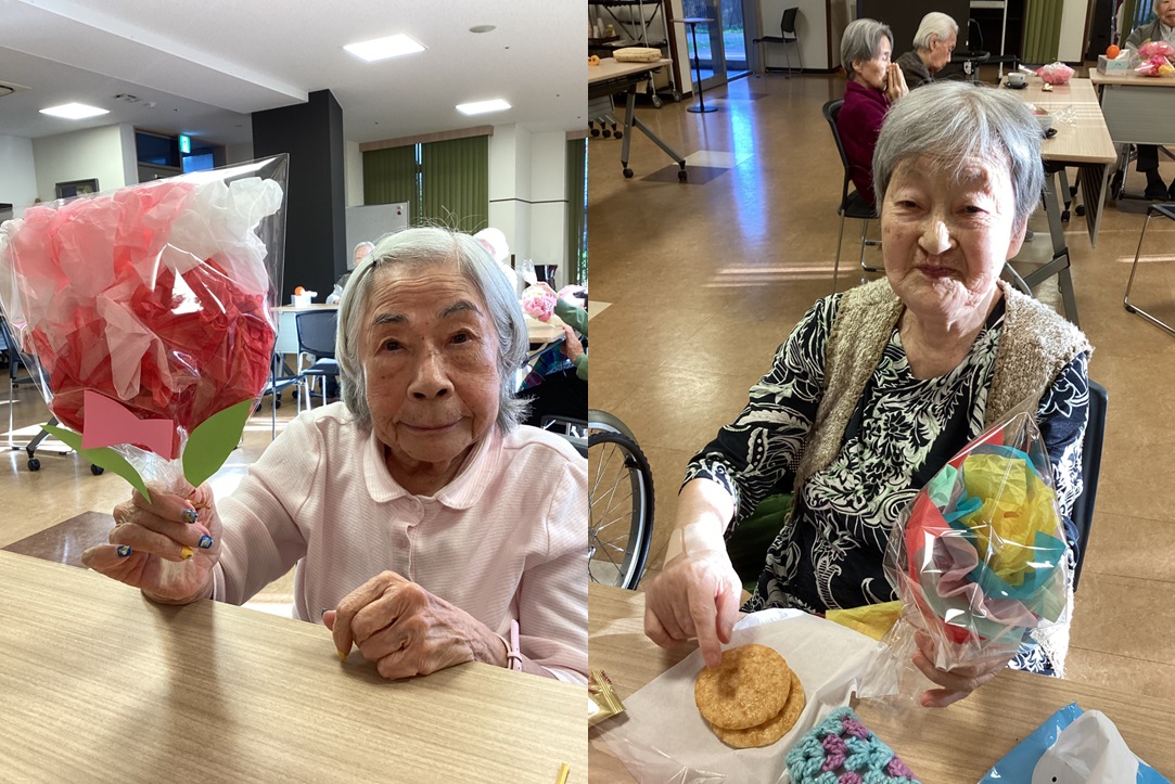 皆様こんにちは。今日はエリザベート成城での取り組みの一つであるミニデイについてお話ししたいと思います。月三回毎週土曜に1階の地域交流ホールにて開催しています。毎月各階それぞれのユニットから3名から4名の入居者様がお越しになり小さいながらも大人数で体操、工作、お茶の時間を楽しんで頂いております。