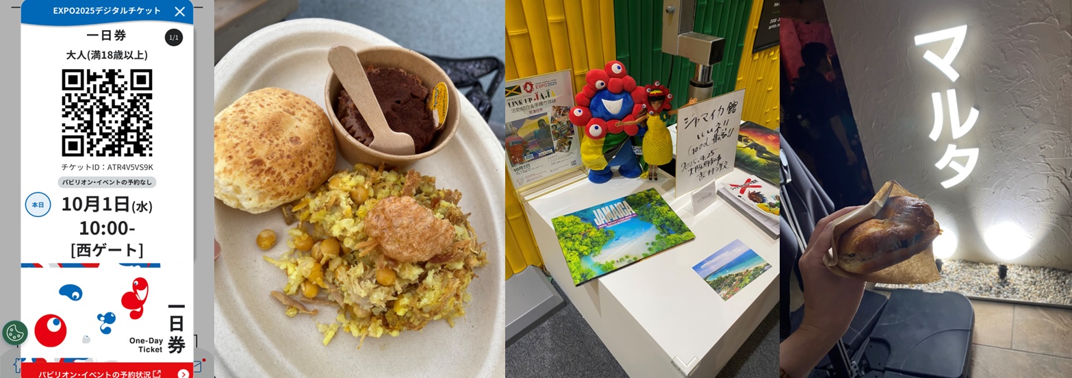 駆け込み万博は朝からお土産を買うにも長蛇の列。午後になるとパビリオンやレストランは並ばないでくださーいと並ぶことも許されない程の大混雑。後で調べると10/1の来場者数は21万3千人!それでも2日間、気合で何個かのパビリオンに並ぶことができ折り畳み椅子が大活躍しました!どうしても食べたかったコロンビアの伝統料理の「レチョナ」を食べる事も出来、ドローンショーや光と水のショーなども楽しむことができました。見てみたかった大屋根リングはとても大きく綺麗で柱の間から風が通り抜け快適な空間を体験できました。10月13日で閉幕する万博。もしこれから行く予定の方はぜひ折り畳み椅子の持参をお勧めします!
